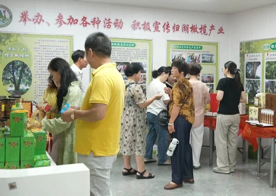 活动现场人头攒动。特色产品展厅内,橄榄汁、橄榄酒等橄榄制品整齐陈列、包装精致,游客们参观老枞橄榄园、体验敲橄榄、品尝“橄榄宴”,沉浸式体验“归湖橄榄”的独特风味。活动现场还举行了合作签约仪式,为橄榄销路再添一重保障,并邀请了当地橄榄种植大户上台分享三棱橄榄的种植技巧、品质优势及市场反响,让在场农户和从业者收获满满。